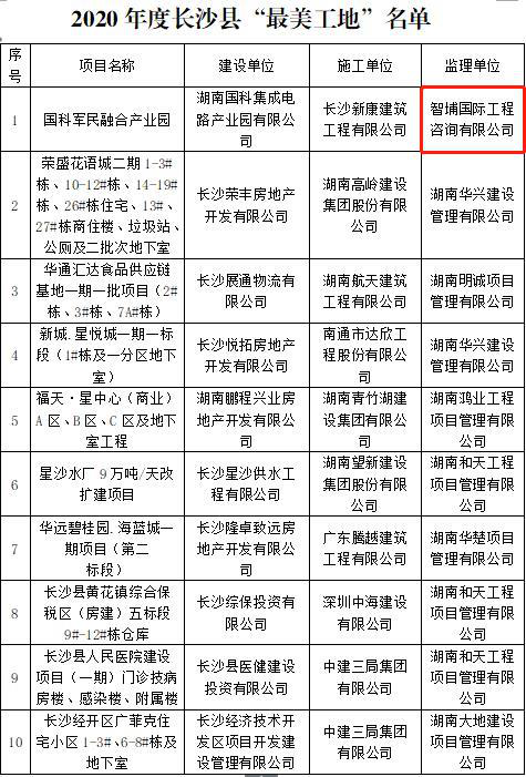 2020年長沙縣十大“最美工地”新鮮出爐,智埔國際監理項目上榜 |