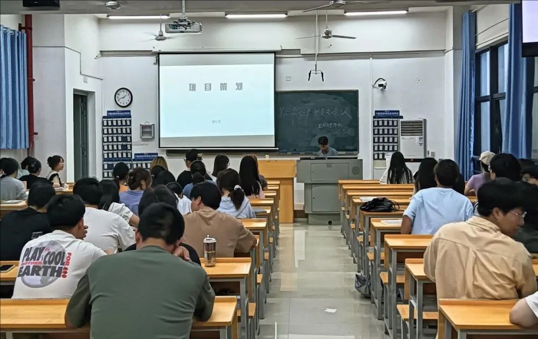午后的課堂,四節連珠,每節課45分鐘。唐董事長一上臺便展示了其卓越的課堂掌控能力,簡單自我介紹之后,立即與學生們進行了親切互動,詢問他們的家鄉,當聽到有來自鳳凰、湖北等地的同學時,他巧妙地將話題一轉,分享了自己在這些地方設計過的景區和城市核心建筑物的故事。隨后,他深入剖析策劃的概念,探討策劃與規劃、藝術與技術的關系,強調創新、創意、創造的重要性,并結合實際案例進行分析。他循循善誘,讓同學們深刻明白:要先做好策劃,再落地規劃;步入社會和企業,應先拿出本領創造價值,財富自然會隨之而來。唐董事長那神采飛揚的眼眸、生動有趣的話語,吸引著在座的每一位學生,讓原本枯燥的課程變得妙趣橫生。
